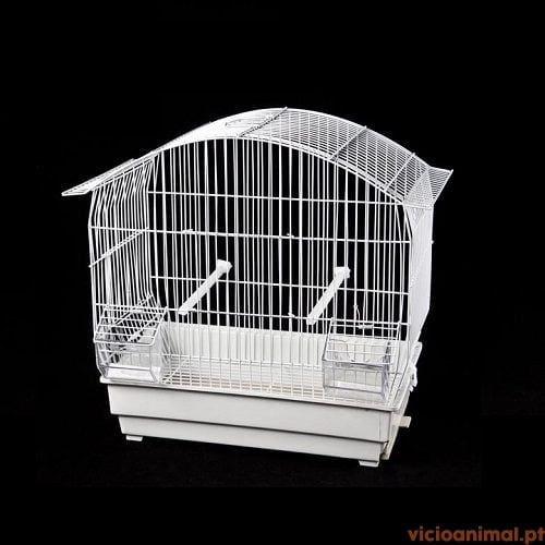 Gaiola Catedral Ovalada equipada com 2 comedouros, 2 poleiros, base/tabuleiro em plástico resistente, é de fácil limpeza devido a uma gaveta aparadora de lixo.