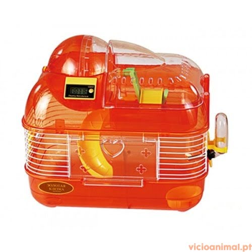 Inclui bebedouro, comedouro, nicho, escorrega e roda de exercício físico com contador de voltas electrónico.
