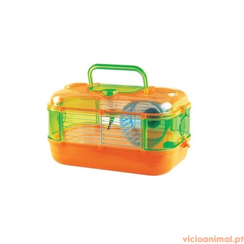 Inclui comedouro, bebedouro e roda em plástico. Totalmente desmontável para uma fácil limpeza.