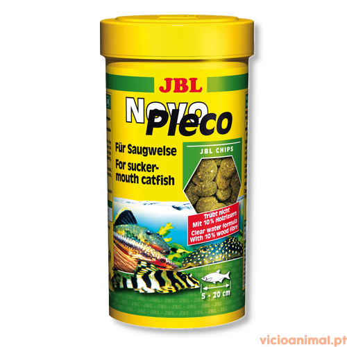 JBL NovoPleco – Alimento para peixes de fundo, plecos herbívoros que precisam de alimentos contendo 10% de madeira para a digestão, a quantidade exacta que estas pastilhas contêm. Como estas novas pastilhas não se dissolvem na água, não poluem, dando assim a oportunidade a peixes tímidos para se alimentar em paz mais tarde.