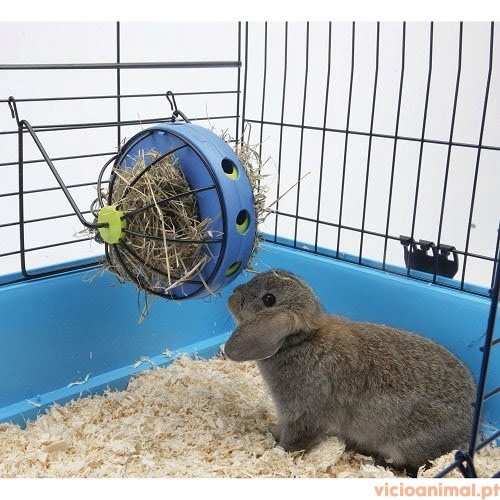 Ideal para coelhos, porquinhos-da-índia e chinchilas. Pode optar por o fixar na rede da gaiola, apoiado no chão ou livremente como uma bola.