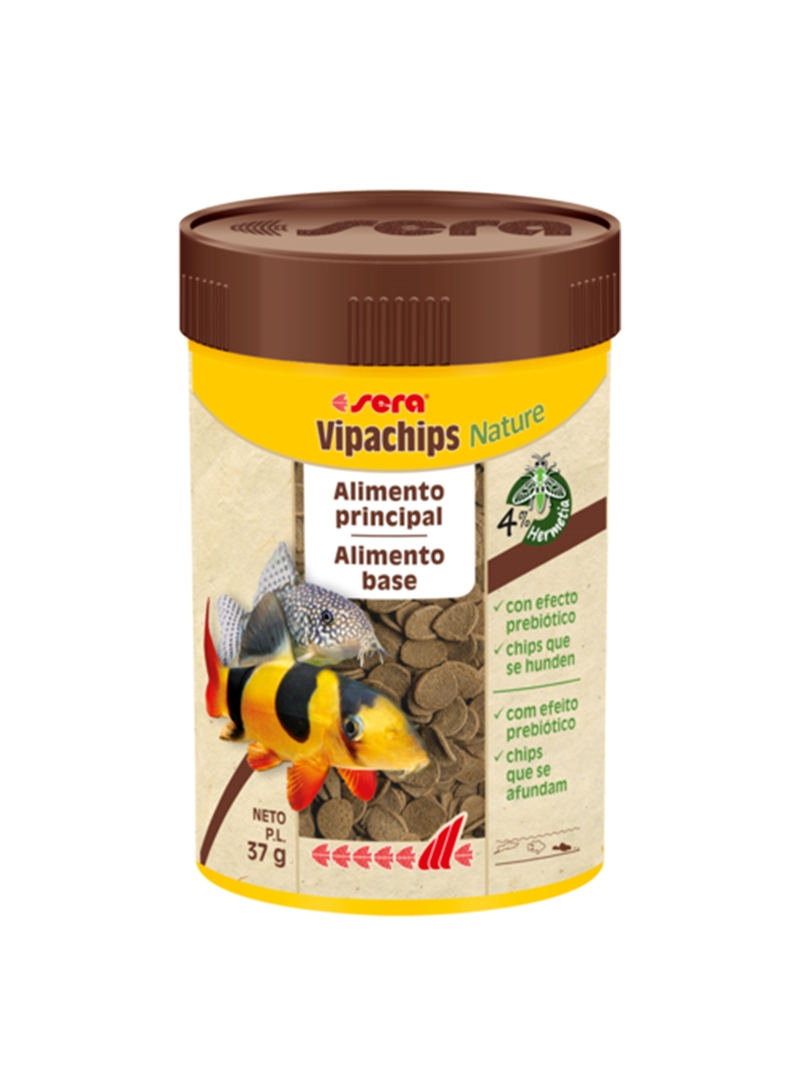 Sera Vipachips Nature – Alimento base para todos os peixes ornamentais sera Vipan é o alimento base universal composto por flocos cuidadosamente processados, para todos os peixes, especialmente para aqueles que comem na superfície da água.
